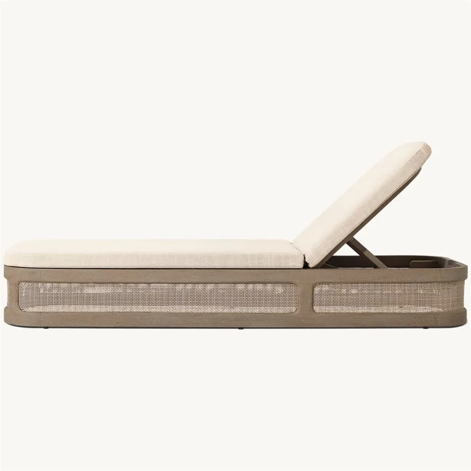 Le tissage en maille d'osier autour de la chaise longue ajoute de la texture, ce qui la rend visuellement plus monotone et ennuyeuse, et la simplicité révèle l'exquisité. Ce tissage est non seulement beau, mais augmente également la respirabilité et le confort de la chaise longue, de sorte que vous vous sentez toujours frais et détendu lorsque vous l'utilisez.
