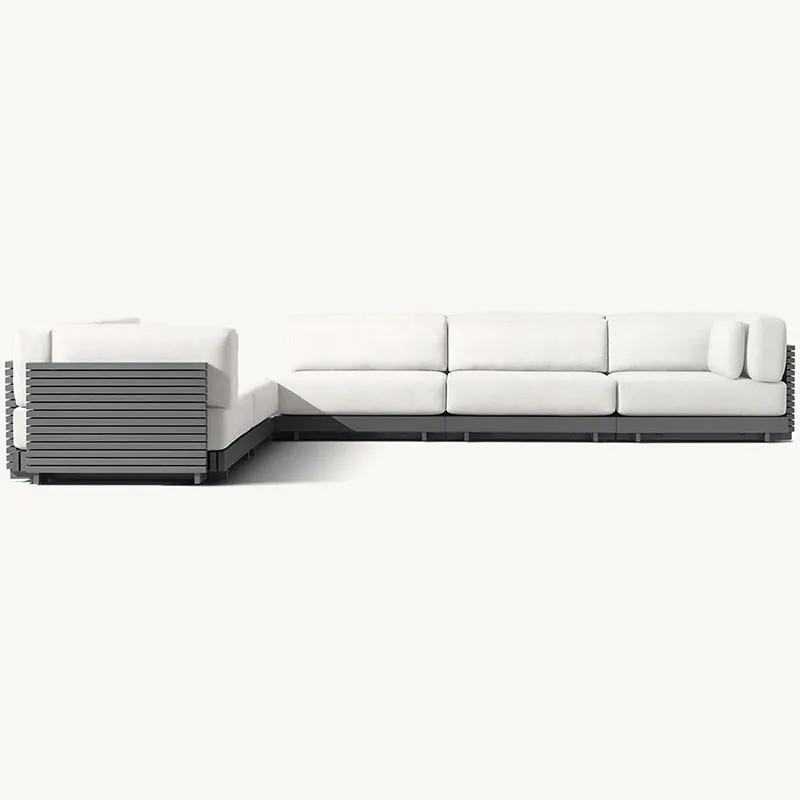 Fabriqué en aluminium robuste, le cadre de notre sectionnel d'extérieur en forme de L est conçu pour durer. L'aluminium, connu pour ses caractéristiques légères mais robustes, offre une excellente durabilité et une résistance à la rouille et à la corrosion. Cela en fait le matériau idéal pour les meubles d'extérieur, garantissant que votre sectionnel reste beau et fonctionnel quelles que soient les conditions météorologiques.