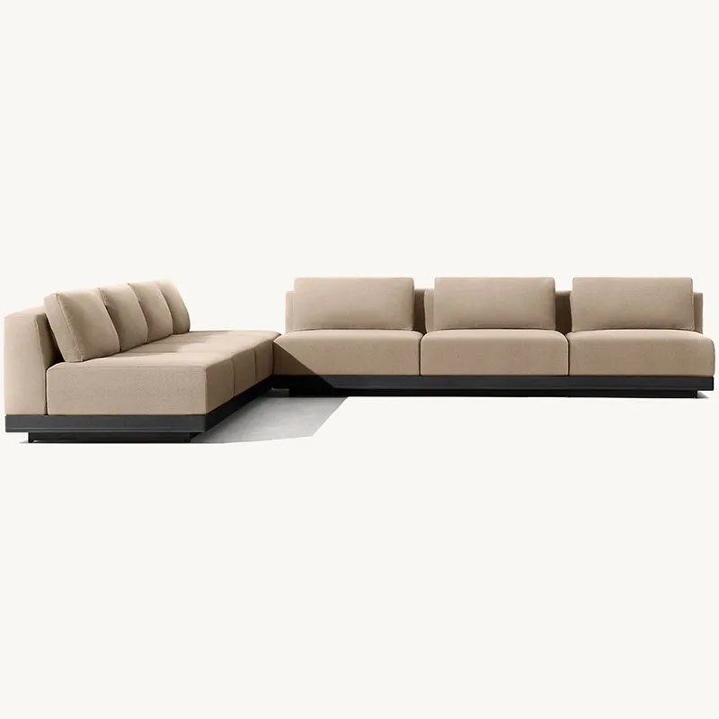 Le cadre robuste en aluminium de notre canapé d'extérieur en forme de L garantit qu'il est construit pour durer, offrant une résilience contre les éléments sans compromettre l'esthétique. L'aluminium est réputé pour sa résistance à la rouille et à la corrosion, ce qui en fait un matériau idéal pour les environnements extérieurs. Ce cadre léger mais solide constitue la base parfaite pour les coussins moelleux et résistants aux intempéries qui ornent cette option d'assise luxueuse.