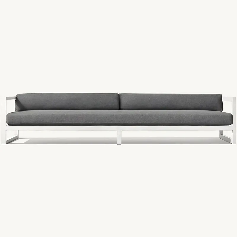 Notre canapé de patio et notre causeuse sont construits avec un cadre en aluminium robuste qui offre une base solide mais légère. Reconnu pour sa résistance à la rouille et aux intempéries, l'aluminium est un matériau idéal pour les meubles d'extérieur. Cela permet à notre canapé et à notre causeuse de résister aux éléments et de conserver leur apparence élégante pendant des années. La finition élégante de l'aluminium ajoute une touche moderne à ces pièces, améliorant l'esthétique générale de votre terrasse.